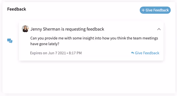 Sending it in emails, sharing it in Zoom meetings, and typing it into Slack or Teams isn’t going to cut it because it doesn’t allow you to store the feedback. Employees will find it hard to find old feedback if they can even find it at all. Managers will have to dig through emails and message chains looking for the feedback they gave ahead of the next review.