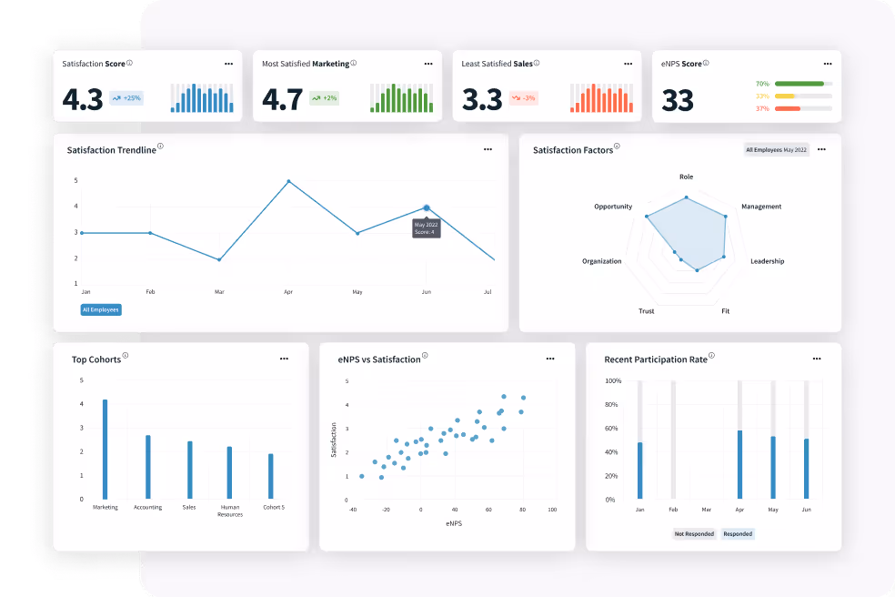 An engaged workforce is one that feels appreciated, which means you have to create a system of recognition and rewards. Continuous feedback software is a good first step. It enables employees to give real-time feedback, including peer-to-peer feedback. And because you can document all achievements on a single platform, you can uncover outstanding performance and celebrate achievements individually, as a team, or organization-wide.