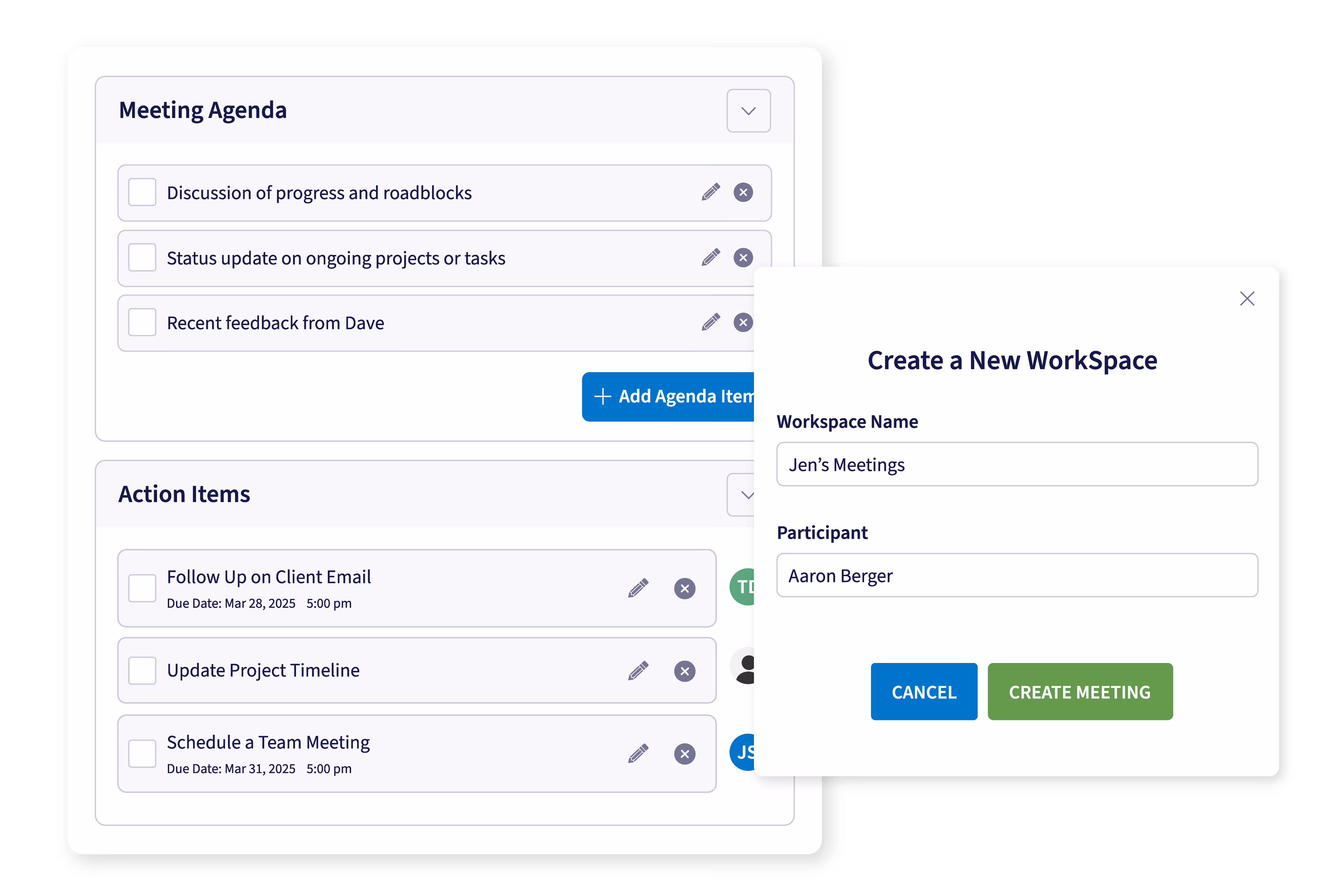 By using PerformYard for meeting agendas and follow-ups, teams ensure that every meeting has a defined purpose, documented outcomes, and aligned next steps. The result is more effective meetings with better preparation, clearer accountability, and consistent follow-through on goals and decisions.