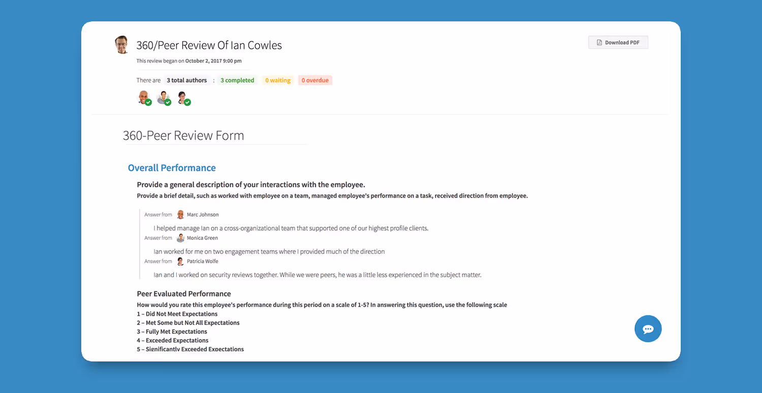 Peer reviews are the lifeblood of the 360 review process. It’s what differentiates 360 reviews from traditional reviews. By soliciting multiple levels of feedback from peers, the 360 review provides a nuanced and holistic look at an employee’s performance.
